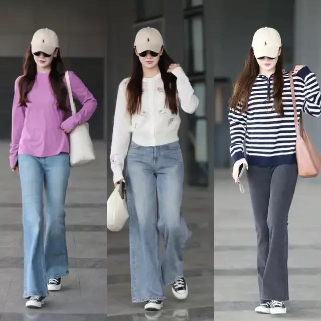 第三章节,穿帆布鞋时,裤子的款式该如何选?Tips①:微喇叭牛仔裤挺括有型,修饰腿型