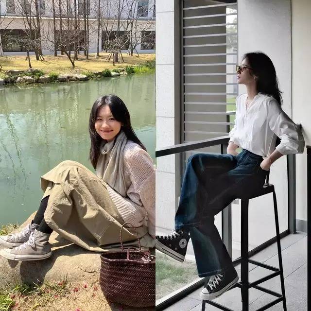 或是选择一件美拉德色系针织毛衣配白色牛仔裤,脚踩白色帆布鞋,自带春日活力感,温柔又得体,干净清爽,这个春天,选择帆布鞋来穿搭,让你变得更耐看更洋气。