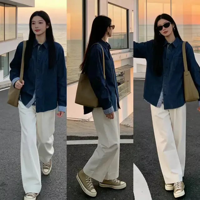 第四章节,上衣该如何选择?Tips①:牛仔衬衫+白色直筒裤